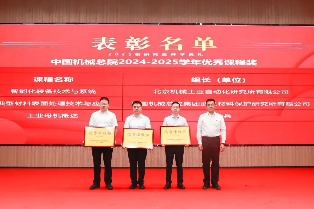 典礼上,王德成、李玉鑫及导师代表共同为新生佩戴总院徽章。这枚徽章不仅象征着中国机械总院人的身份,更承载着“以提升中国装备制造水平为己任”的使命与荣光。优秀导师奖、最受欢迎教师奖、新生入学奖学金和优秀课程奖获奖代表上台领奖。新生代表手捧鲜花向导师们献上诚挚敬意与节日祝福,表达莘莘学子的感激之情。